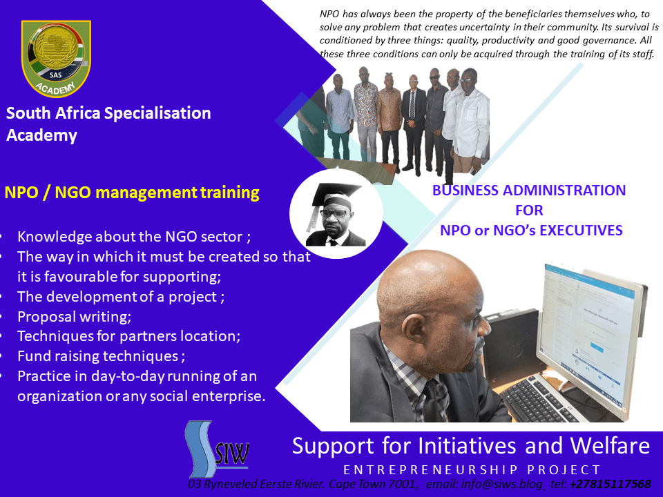 We believe that learning entrepreneurship requires simmilation through NGO management. Managing a business is comparable to that of an NGO (Charity). The difference is that the company is created when you have capital (investment money) but the NGO can be created with or without capital. During this project it is a question of training beneficiaries in NGO management. Management training allows trained candidates to make their private initiatives useful for the social recovery of the community as well as for their own families. For the effective achievement of these objectives, the priority modules are: Knowledge about the NGO sector and the way in which it must be created so that it is favourable for supporting; The development of a project ; Proposal writing; Techniques for partners location; Fund raising techniques and practice in day-to-day running of an organization or any social entreprise, etc. ……….